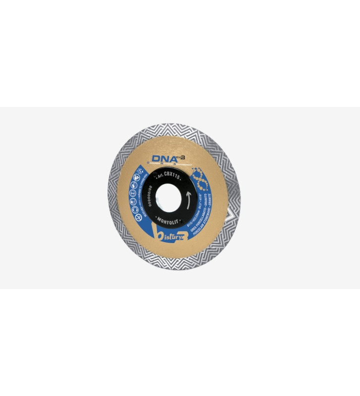 Com a tecnologia DNA. Patenteado mundialmente, o sistema DNA posiciona o diamante no melhor ângulo do disco. Esta tecnologia aumenta em grande percentagem a capacidade de corte, com um rendimento de 100% mais elevado do que discos de corte diamantados semelhantes.