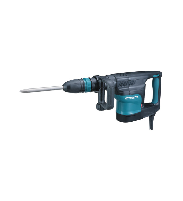 Nova gama de martelos demolidores da classe 7 kg. SDS-MAX inserção de uma só acção com 12 posições de cinzelagem. Escovas de maior duração, aumento assim o tempo da realização de manutenção. Elastómero no punho, tornando mais cómoda a utilização do martelo para o operário. Martelo demolidor ideal para demolir para a parede, abertura de roços e ocasionalmente pequenas demolições para o chão. Com emcabadouro estreito para utilizar sem punho para poder ter maior controlo na hora de demolir. Não baixa as rotações quando está em esforço, arranque suave para maior controlo e luzes indicadoras de escovas e avarias.