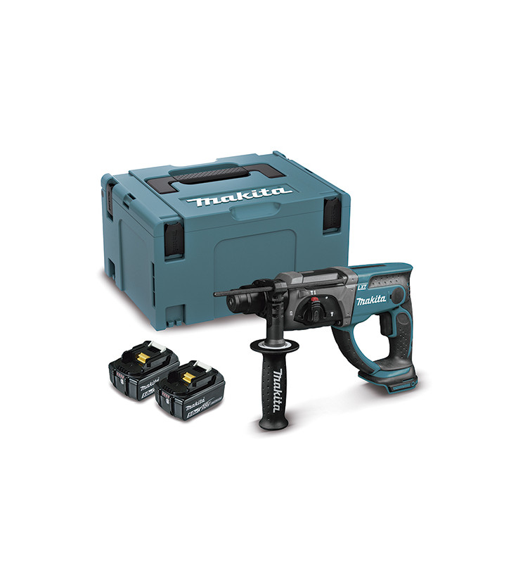 O Martelo ligeiro Makita DHR202RME é um excelente martelo profissional para os trabalhos mais exigentes e delicados. Este martelo 18V traz uma nova bateria de lítio de 4.0 Ah tendo ainda a capacidade de carga máxima o que proporciona maior capacidade e duração para o trabalho. O martelo DHR202RME apresenta uma ergonomia esplendida com um punho orientável 360º e limitador de profundidade ajustável.Com uma nova bateria de lítio de 4,0 Ah, o martelo DHR 202RME tem a capacidade de carga máxima o que se traduz numa maior capacidade e duração para o trabalho. Dispõe de inserção SDS-PLUS de uma só acção. Ferramenta a bateria extremamente ergonómica com um punho orientável 360º e limitador de profundidade ajustável. Estes martelos a bateria são fornecido com carregador rápido. (Carregamento 36min de tempo. Com bateria nova). Possibilidade de iluminação da área de trabalho através de um led de alta densidade sem necessidade de ligar o motor, apagando-se alguns segundos depois de libertar o interruptor. Binário: quando a ponta da broca está bloqueada acidentalmente, o limitador de binário opera, parando a rotação da broca.