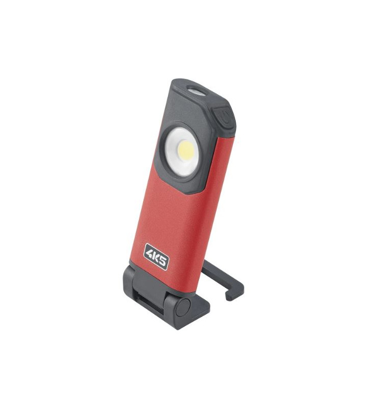 Fixação versátil por gancho, ímã ou suporte giratório.