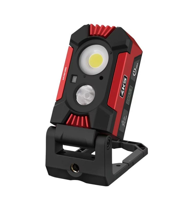 Iluminação eficaz por holofote de 1500 lúmens regulável continuamente e holofote de 500 lúmens.