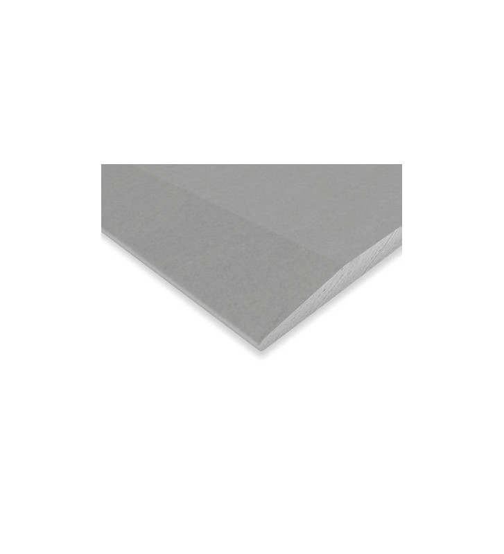 Placa de Gesso Laminado com cartão nas suas faces e núcleo em gesso de origem natural, fabricada mediante processo de laminação em contínuo com os bordos longitudinais afinados.