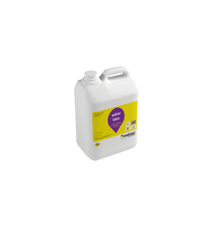 Weber latex é uma resina de adição líquida para otimização da aderência de argamassas à base de ligantes hidráulicos (betonilhas, argamassas de alvenaria, rebocos, juntas impermeáveis de aplicação entre pedra e blocos, etc.). Deve ser adicionado à agua de amassadura de argamassas com ligantes hidráulicos. Apto para a preparação de calda para incrementar aderência de betonilhas semi secas a suportes cimentícios.